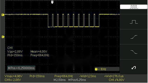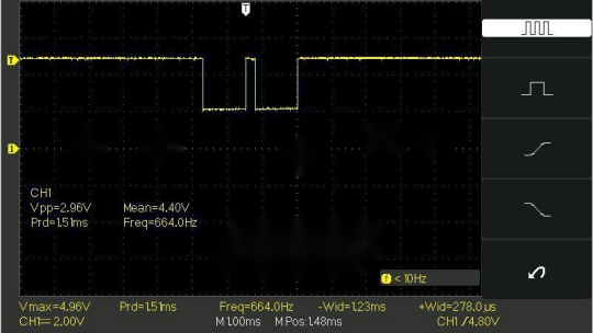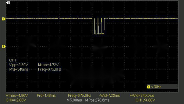 For a sequence of ten pulses, the pulse time is 1.2ms, and the interval is 270μs.