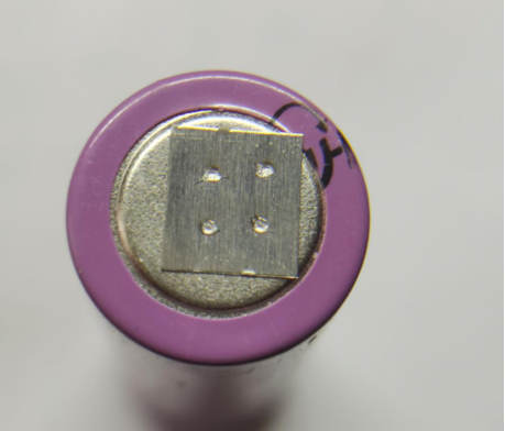 Finally, let's spot weld a battery using 0.15mm nickel-plated steel, with a welding time of 3ms. The weld spot looks remarkably flawless.