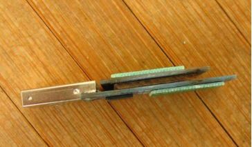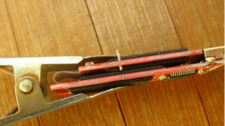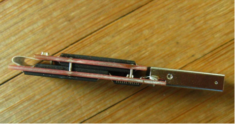 On the ceramic base, hold it down with a knife and leave about 1.2mm of the end exposed. Then, use a soldering iron to remove the plastic film.