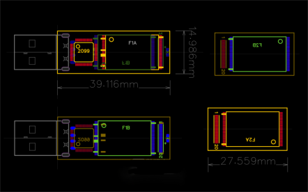 The structure consists of 6 layers, with 2 layers being the PCB and 4 layers being Flash chips, making it approximately 6mm thick.