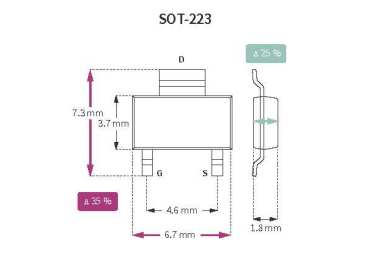 With a shape resembling the TO-220 but more compact, the STO-223 package takes up less circuit board space, benefiting the design and layout of electronic devices. Despite its smaller size, it boasts impressive heat dissipation capabilities, efficiently transferring away the heat produced by the device to maintain optimal operating temperatures. This packaging typically features three pins that provide connectivity and secure placement.